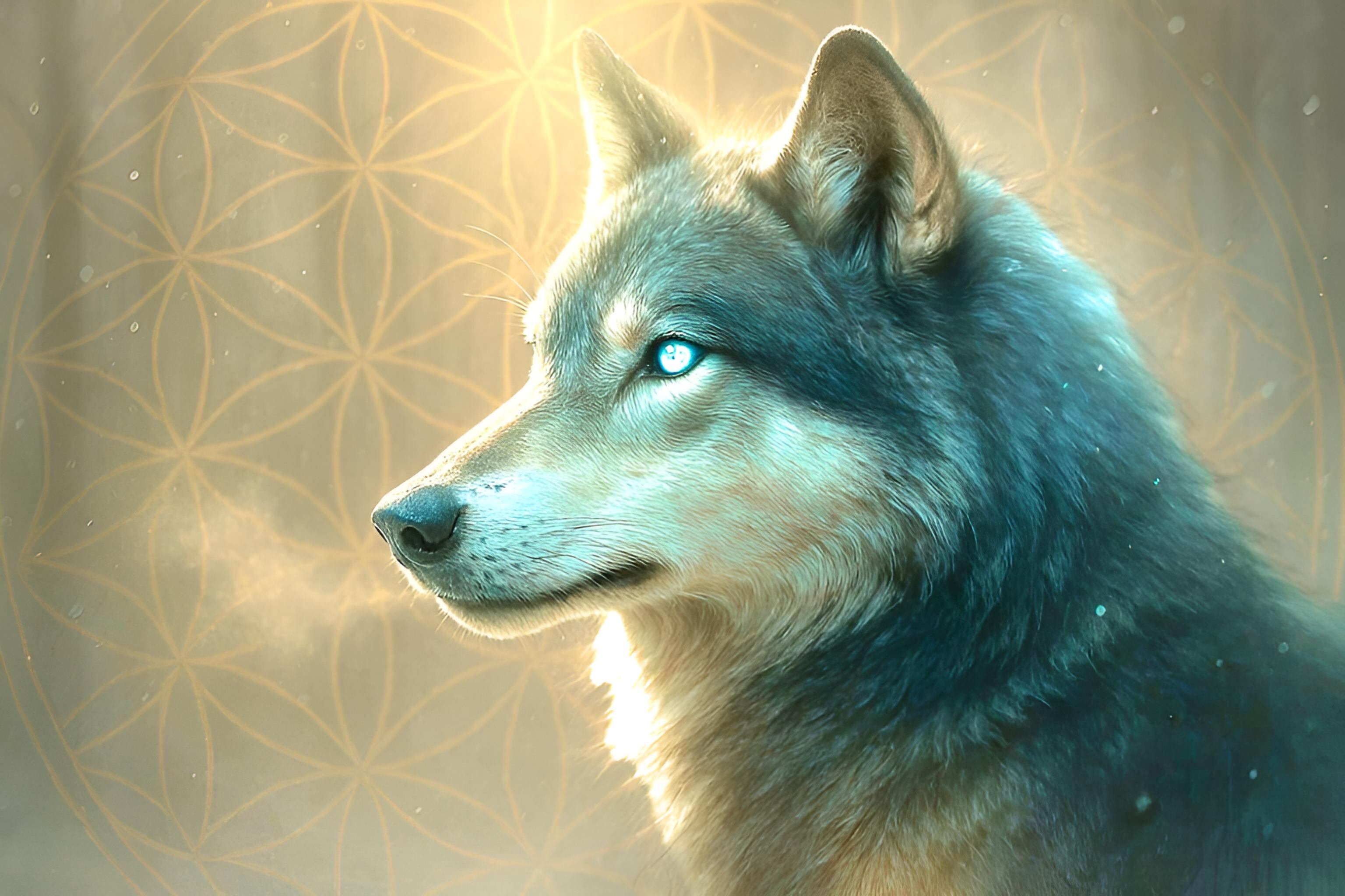 スピリチュアルアート《黎明の蒼狼 〜フラワー・オブ・サイレンス〜》1点
