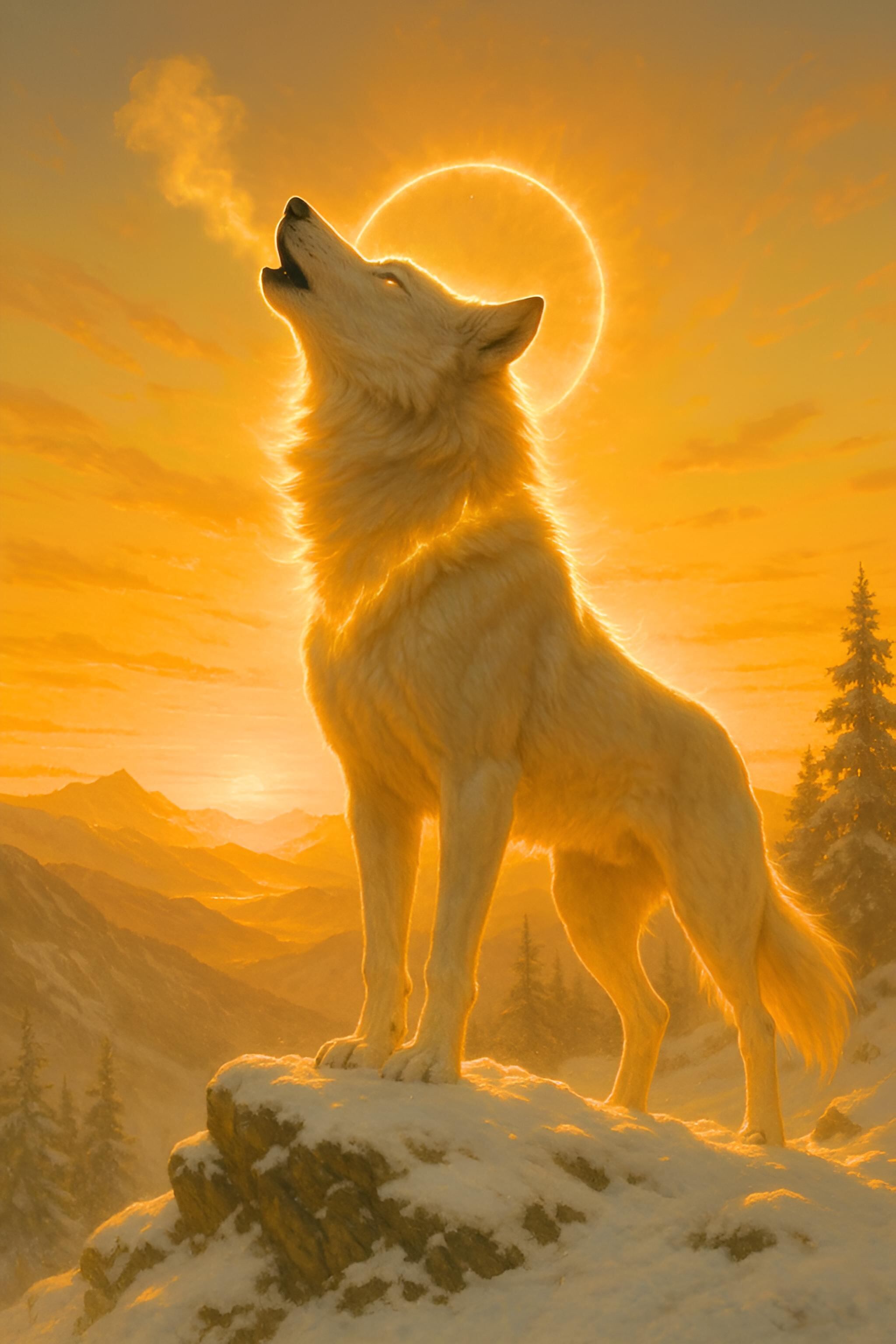 黄金の光に包まれた白狼は、