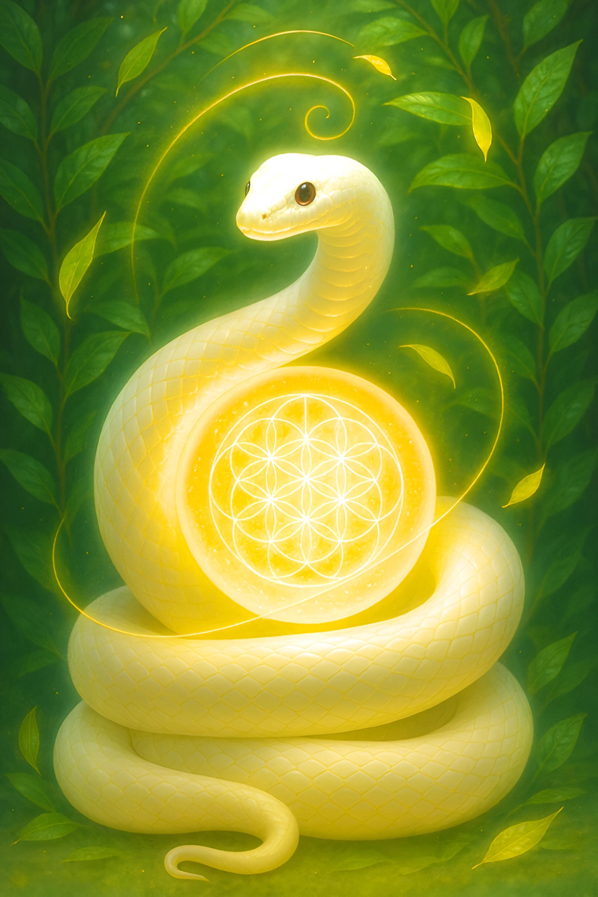 スピリチュアルアート《光榊の白蛇 〜黄金比が開く繁栄〜》1点