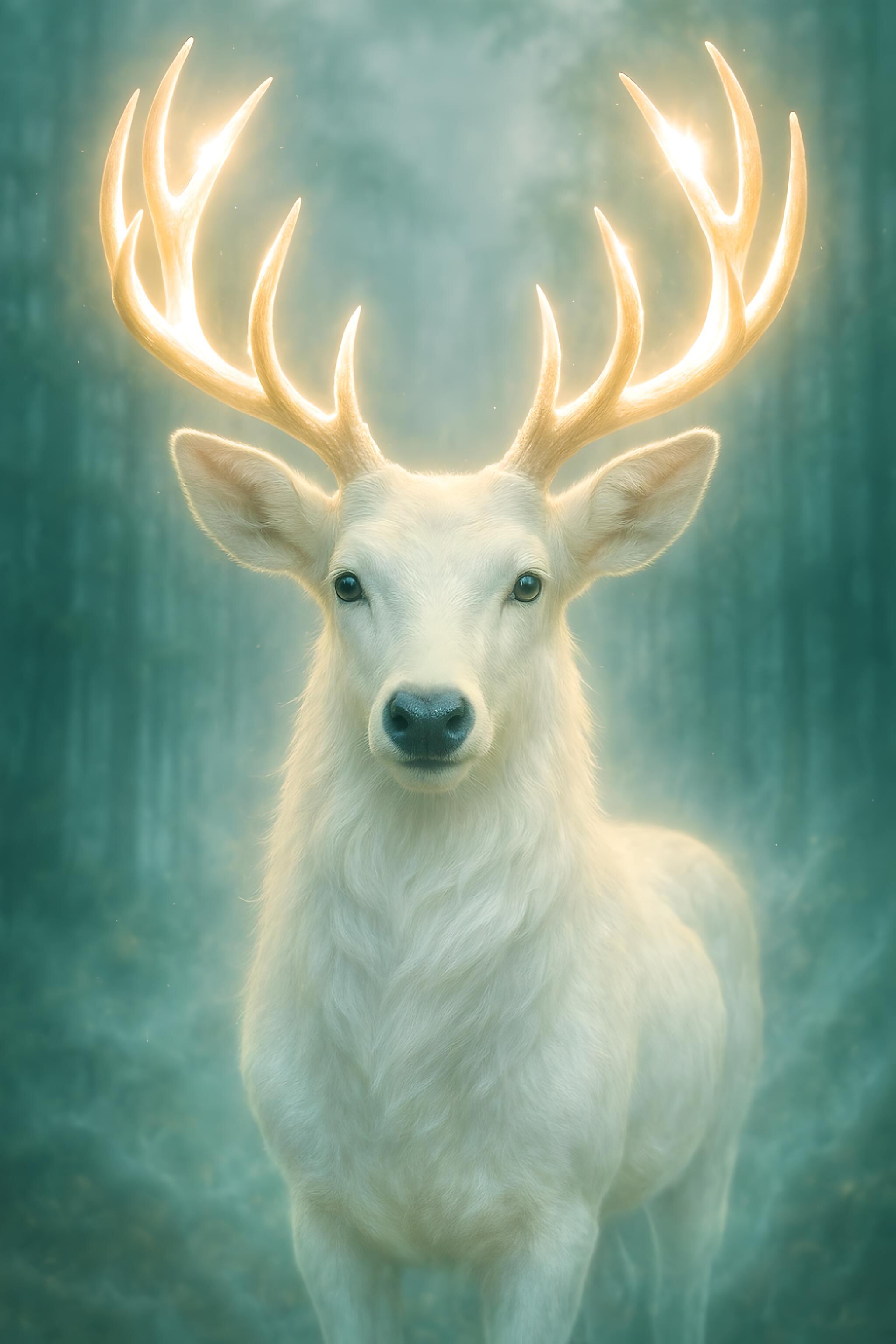 スピリチュアルアート《白光の鹿 〜天啓を告げるもの〜》1点
